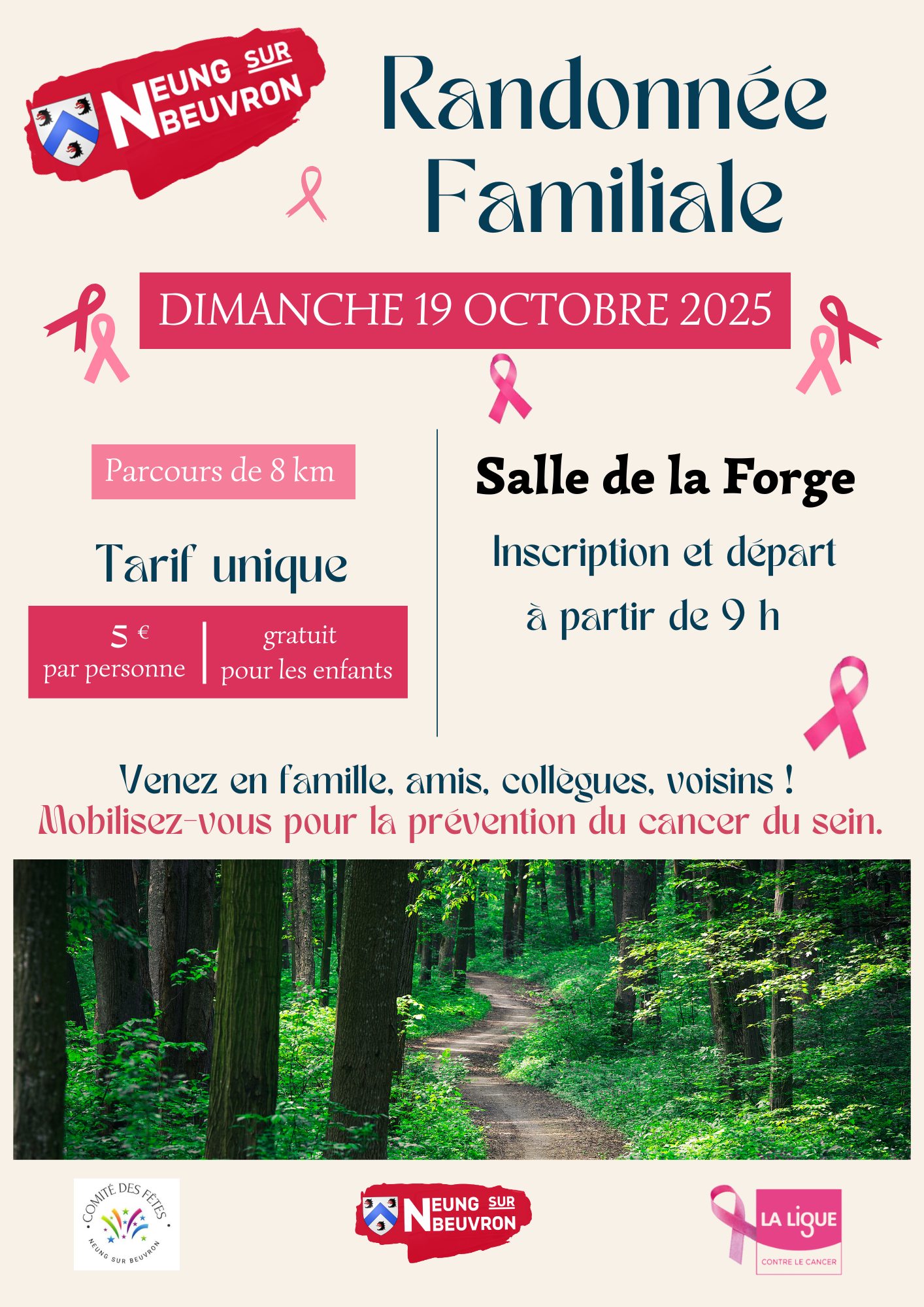 Dans le cadre d'Octobre Rose et de la prévention du cancer du sein, la municipalité de Neung-sur-Beuvron et le Comité des Fêtes organisent une randonnée familiale de 8 km le dimanche 19 Octobre 2025 à Neung-sur-Beuvron. Vous pourrez venir en famille, entre amis ou...
