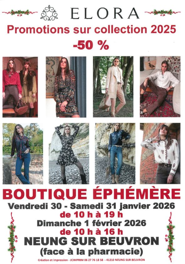 Elora vous propose des promotions allant jusqu’à 50 % sur l’ensemble de la collection 2025.