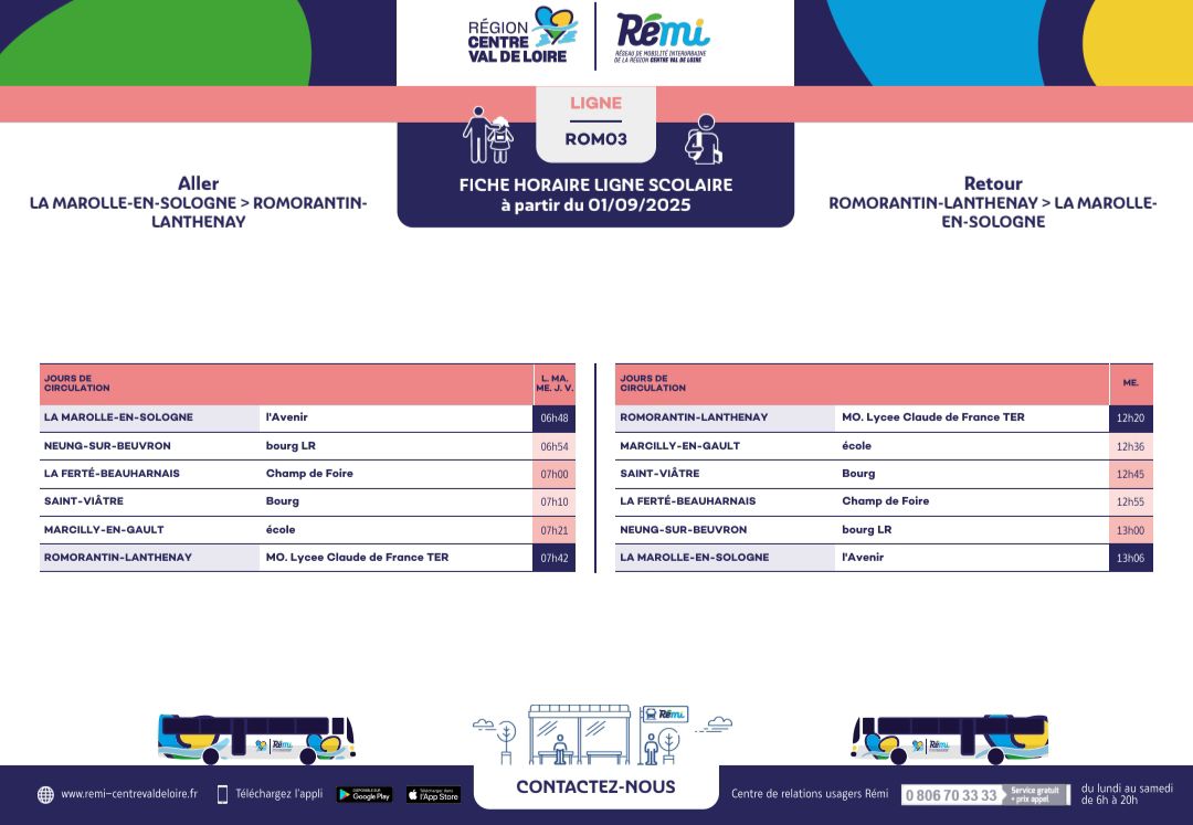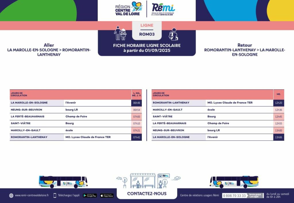 le passage du bus scolaire pour le lycée de Romorantin est à 6h54 et non 7h00 à l’arrêt situé près du Beuvron.